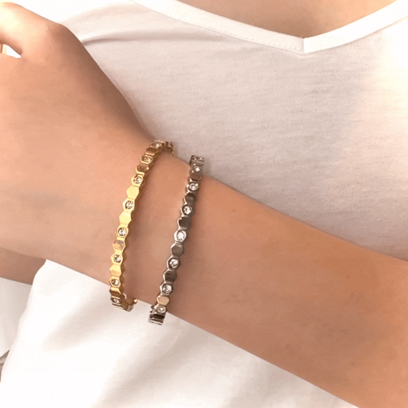 蜂の巣をイメージしたイノベーティブな形状が、おしゃれな手元を演出します。軽やかな着け心地で、デイリースタイルから特別なシーンまで幅広く活躍するアイテムです!