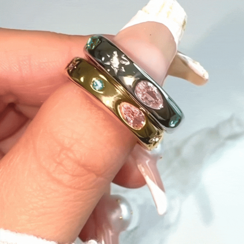 美しい輝きを持つオーロラジェムリングが新登場です!シンプルでありながら、存在感のあるこのリングは、日常のファッションから特別なシーンまで、あなたの手元を華やかに彩ります。