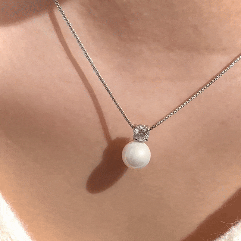優雅な存在感を放つパールダイヤネックレスが新たに登場!パールとダイヤモンドの縦並びな組み合わせが、シンプルなスタイルに華やかさを添え、特別なシーンにもおすすめのアイテムです。流れるようなデザインが首元を美しく引き立て、洗練された印象を与えます。